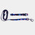 - The collar, featuring a secure black buckle and an attached silver ring for tags, is matched with a complementary leash that includes a comfortable loop handle and a sturdy silver clasp.
